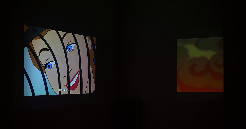 2deep.mp4 is a video installation which points out the question of meaning; its existance, logic of determination and functionality. The backbones of the work are Disney's animated movies, apophenia and the Internet.All of the material (both the videos and the subtitles) is taken from Disney's movies, and remained intact.