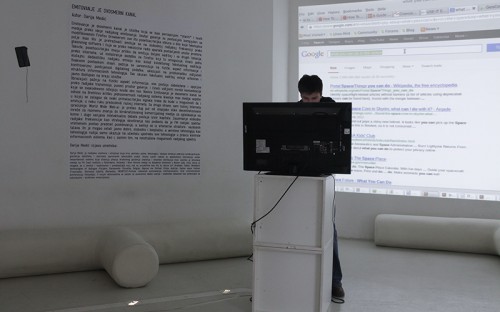 The title Transmitting is a two way channel refers to Brecht's critique of the one sidedness of the radio system (later to be mass media in general) in which he argued that every signal recipient should be capable of broadcasting himself,in a way foreseeing the development of the Internet. On the other hand, the sole expansion of the Internet has passed a long way from a utopian image of a decentralized network for knowledge exchange to a bureaucratized commercial medium for advertising on which intellectual debate, as well as banal information become the source of capital.
