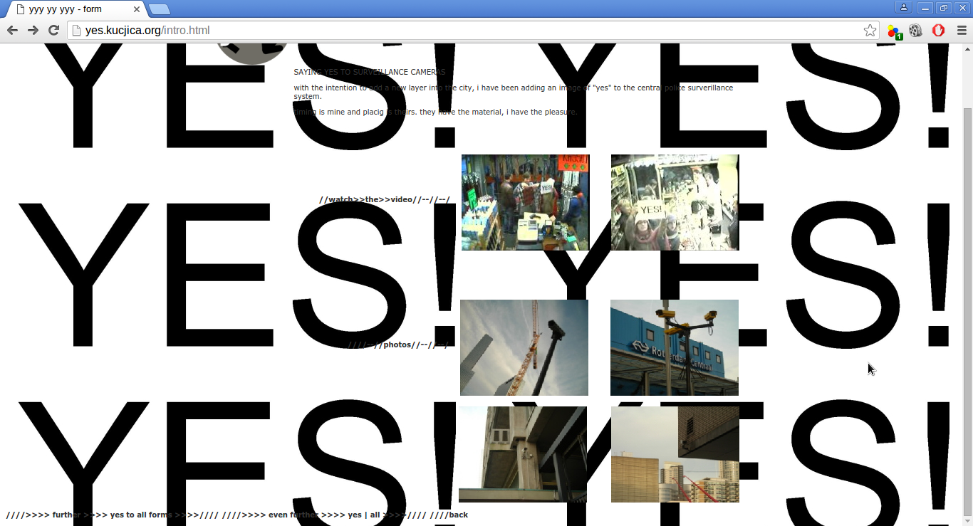 The project focuses on common web-forms that captivate semi-conscious agreements of web visitors to all kinds of pretentiously official contracts: a browser extension is then provided to turn all these input forms into a uniform and repetitive "yes to all", emphasising the numb attitude most people assumes when confronted with web 2.0 licenses, input dialogs and signature widgets that are ultimately holding users responsible for such semi-automated choices.